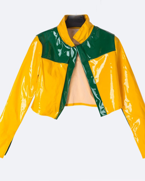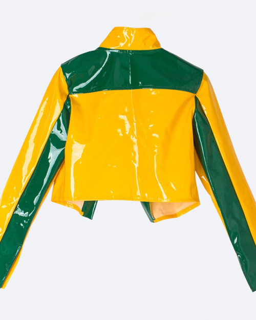 Euramerican Long Sleeves Patchwork Yellow PU Jacket