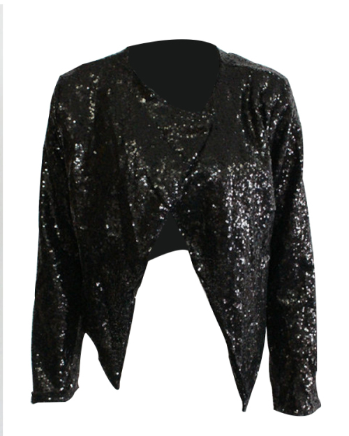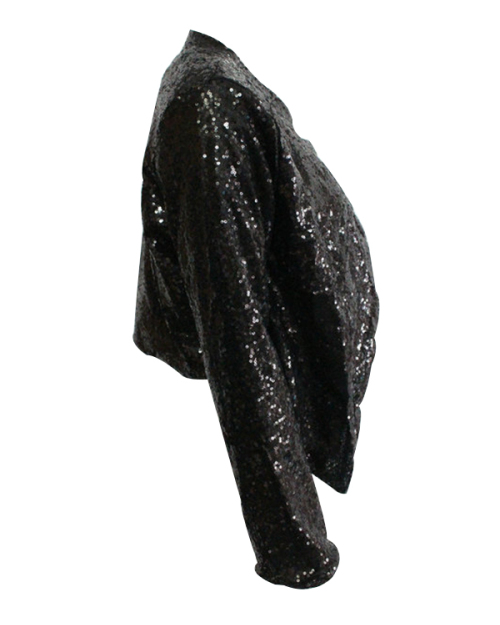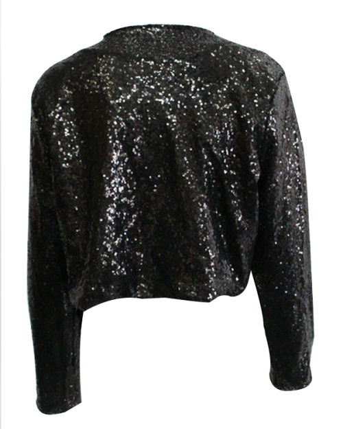 Euramerican Turndown Collar Sequins Decoration Black Polyester Coat
