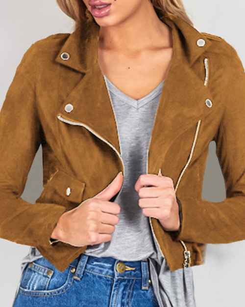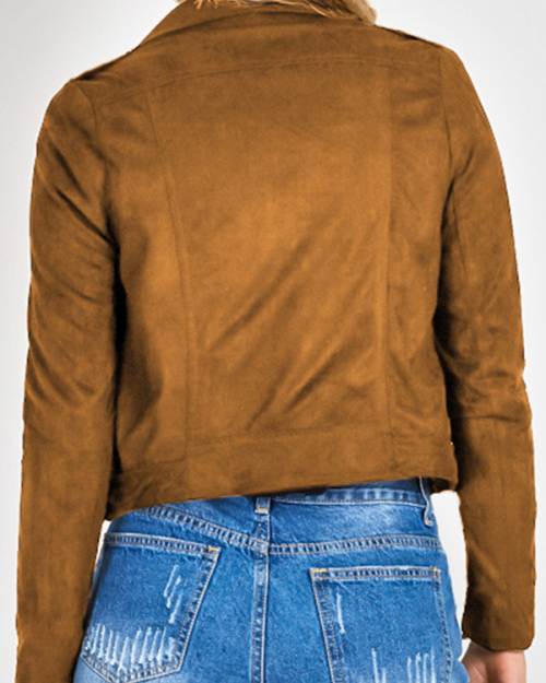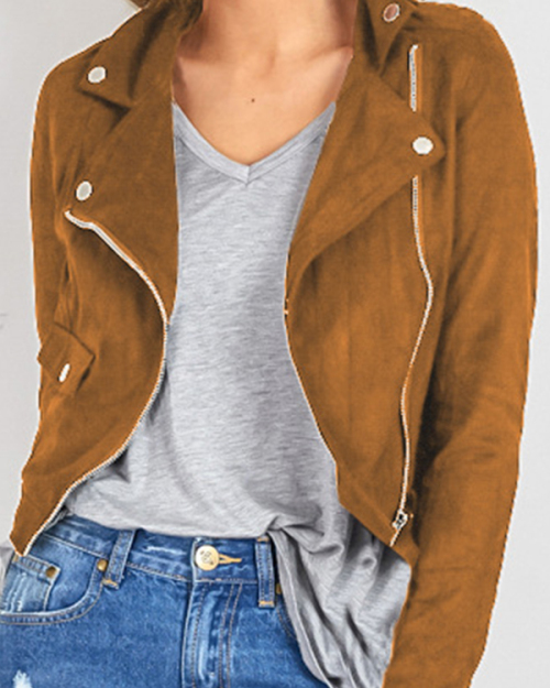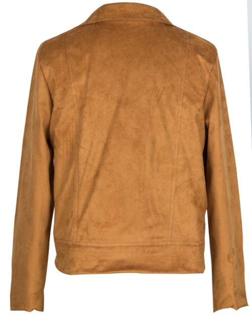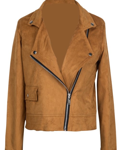 Euramerican Turndown Collar Zipper Design Brown Suede Jacket