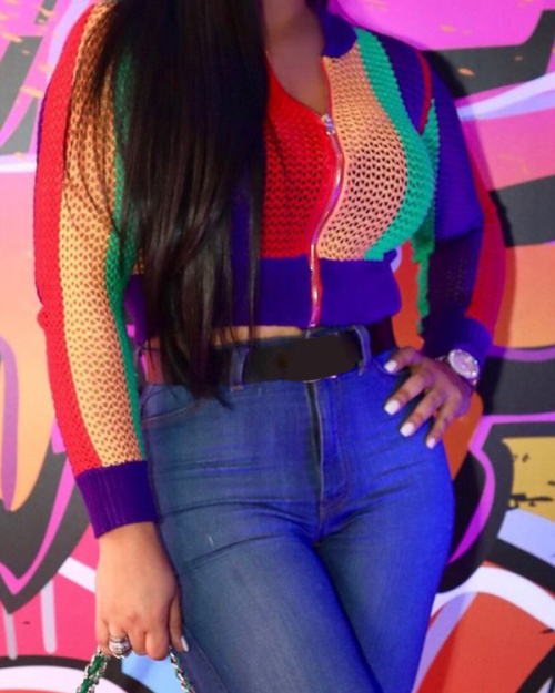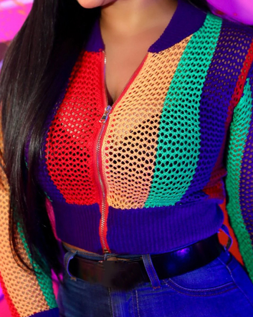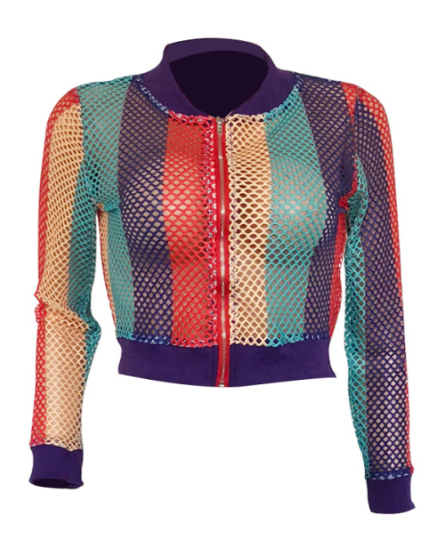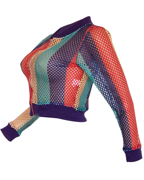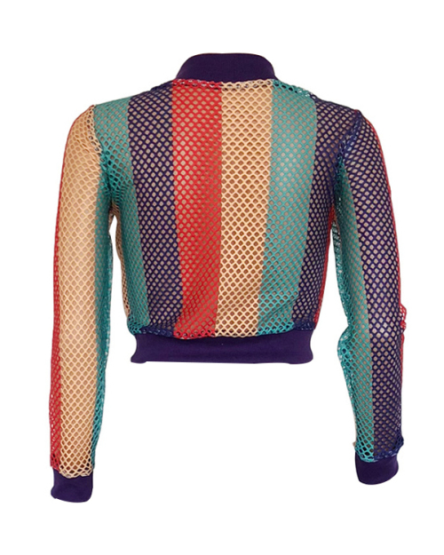 Fashionable Round Neck Hollow-out Printed Polyester Short Coat