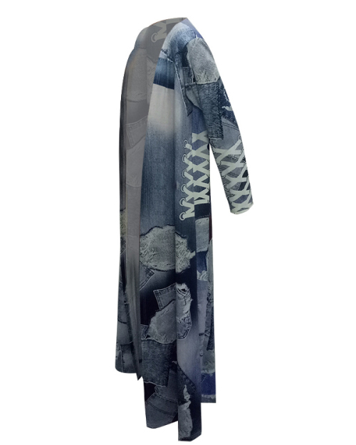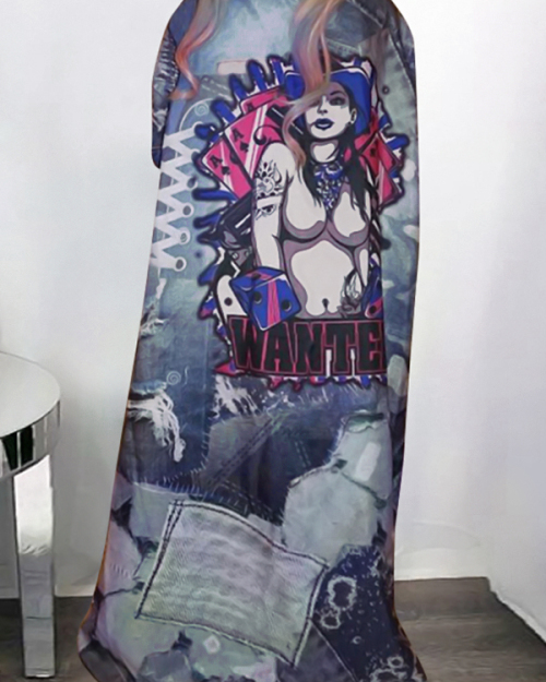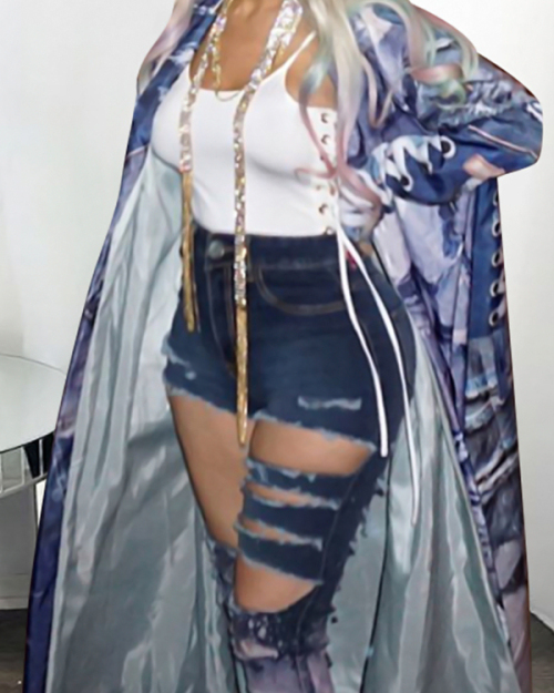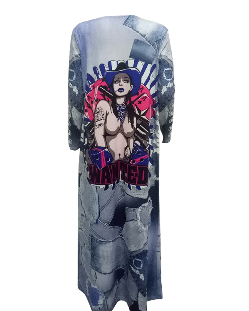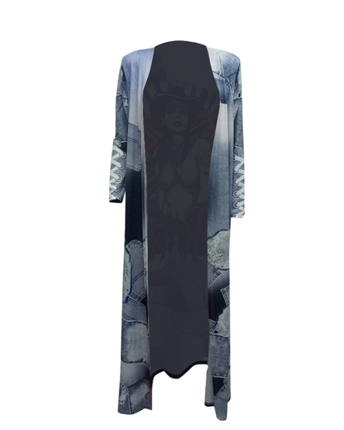 Fashionable V Neck Cartoon Characters Printed Polyester X Long Coat
