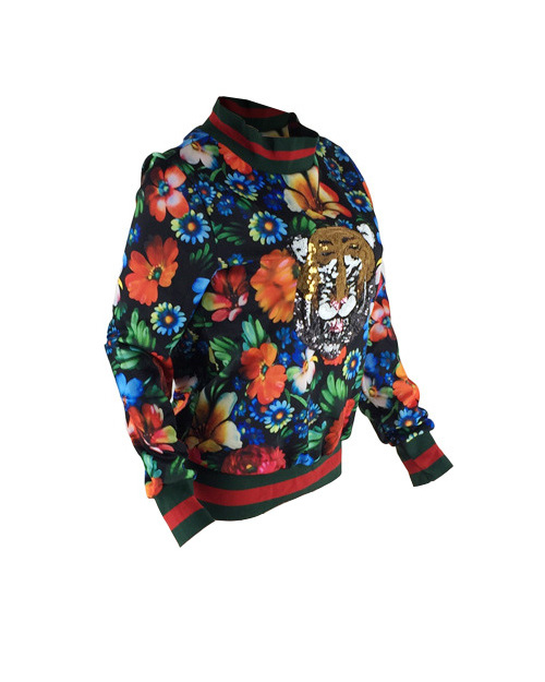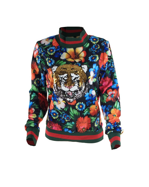 Leisure Round Neck Floral Printed Polyester Pullovers