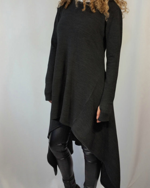 Leisure Round Neck Long Sleeves Black Cotton Blends Pullovers