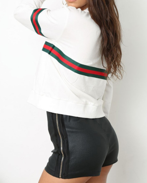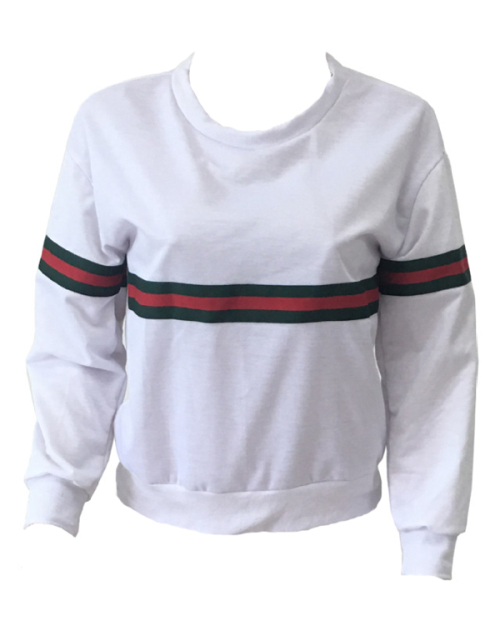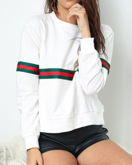 Leisure Round Neck Patchwork White Polyester Pullovers