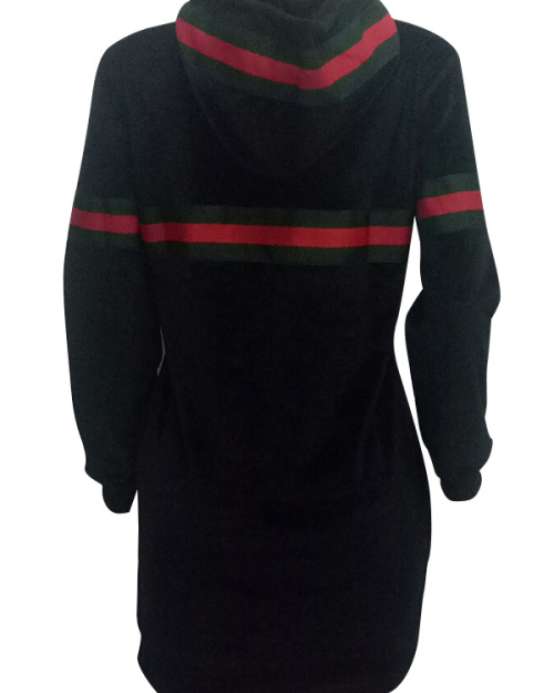 Causal Hooded Collar Long Sleeve Striped Patchwork Black Velvet Hoodies
