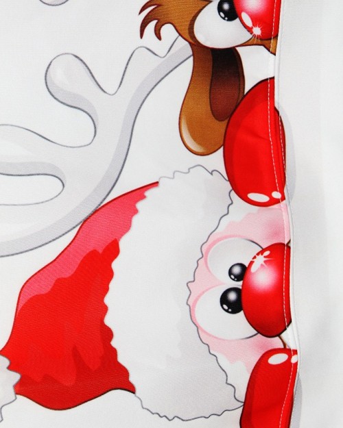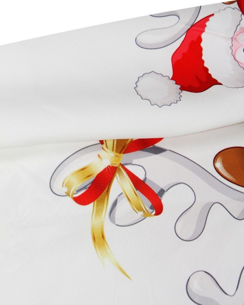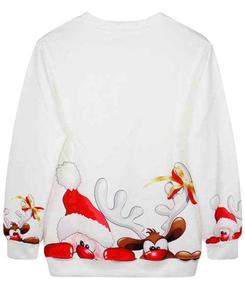 Cheap Casual Long Sleeves Print White Cotton Blend Regular Christmas Pullover Sweat