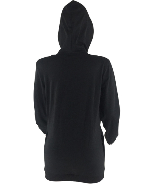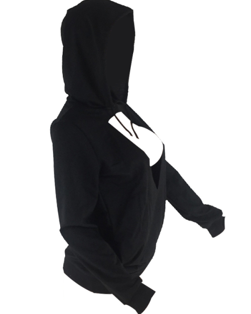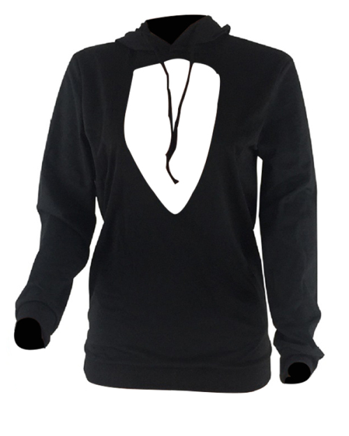 Euramerican Hooded Collar Chest Hollow-out Black Polyester Hoodies