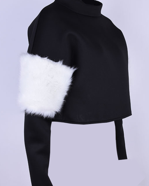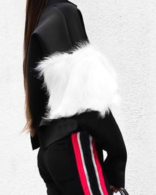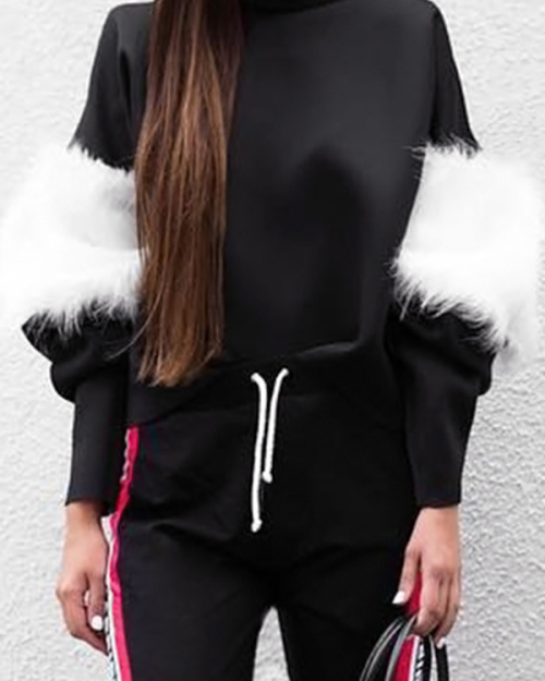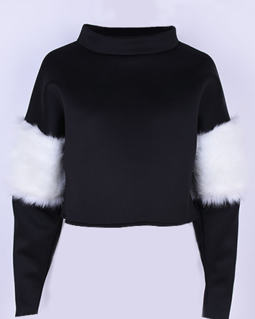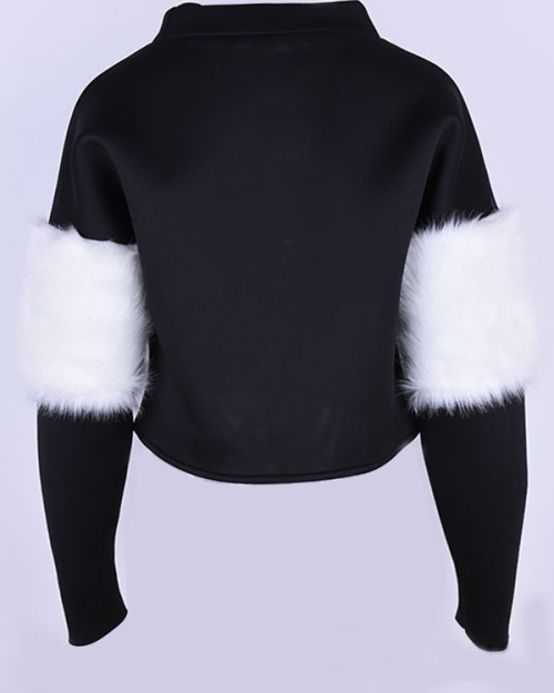 Euramerican Mandarin Collar Villus Patchwork Black Polyester Hoodies