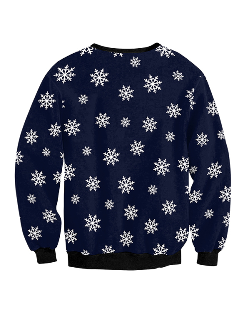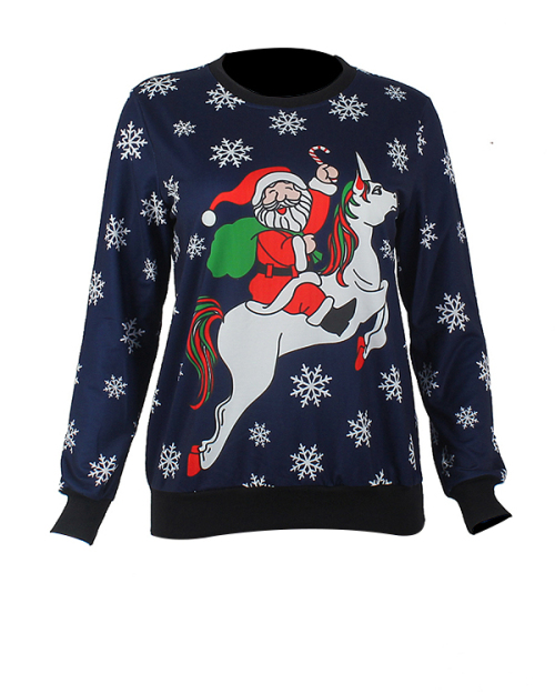 Euramerican Round Neck Christmas Printed Blue Polyester Hoodies