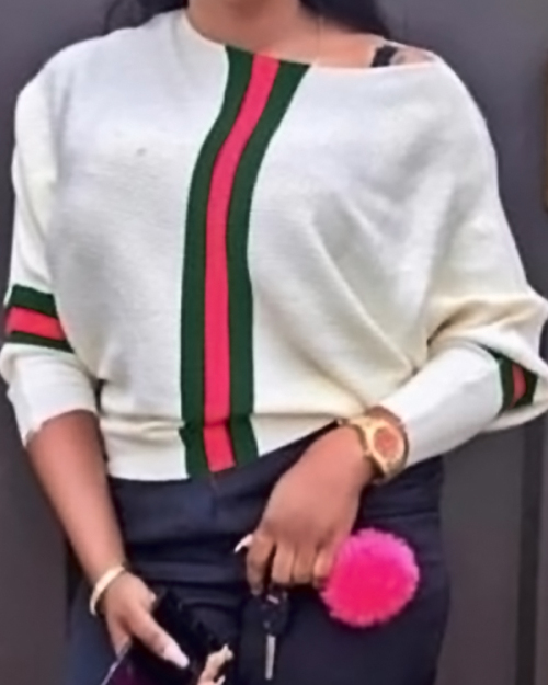 Euramerican Round Neck Striped Patchwork White Polyester Hoodies