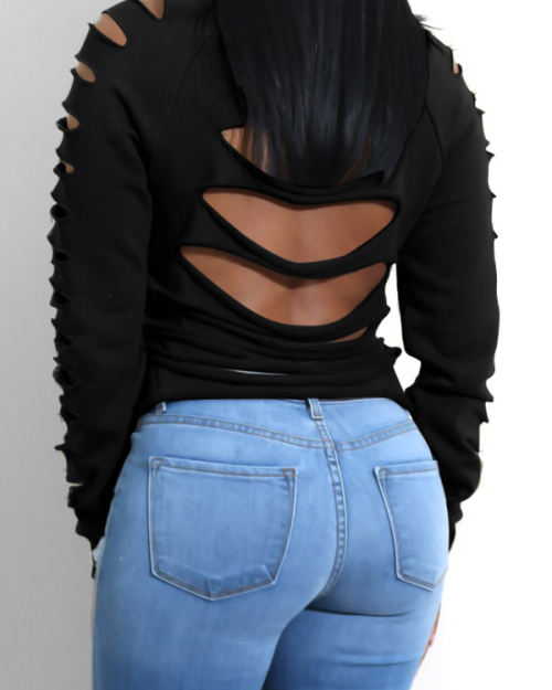 Fashionable Round Neck Hollow-out Black Spandex Hoodies
