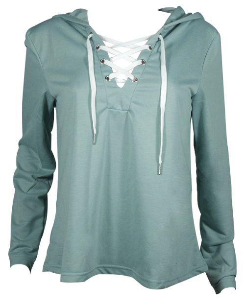 Leisure Long Sleeves Lace-up Green Polyester Hoodies