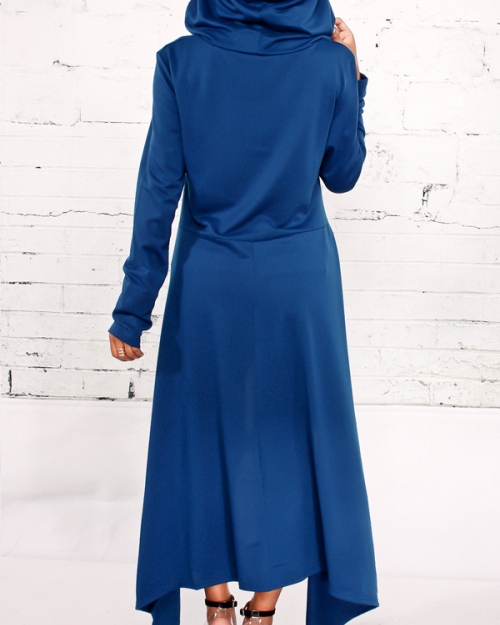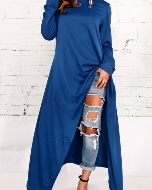 Leisure Round Neck Long Sleeves Blue Cotton Blends Pullovers