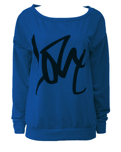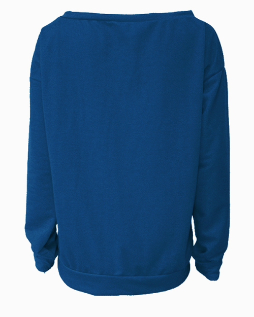 Leisure Round Neck Long Sleeves Letters Printing Royalblue Cotton Pullover