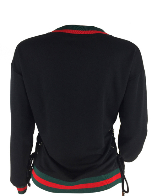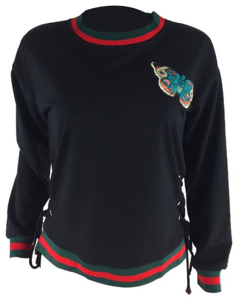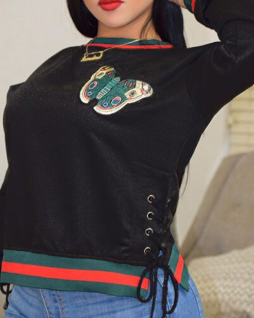 Stylish Round Neck Butterfly Printed Black Cotton Blends Hoodies