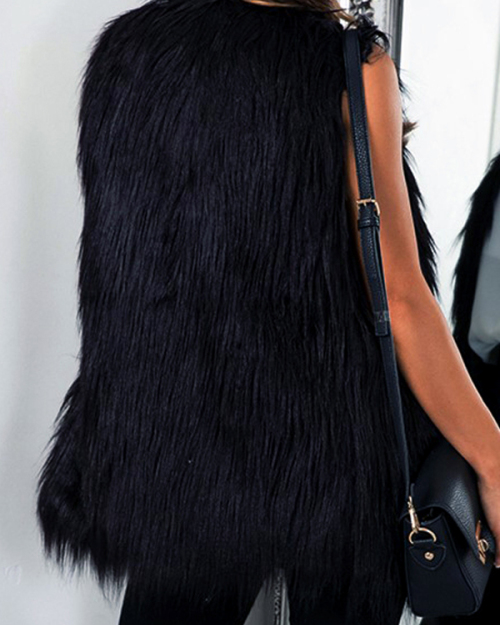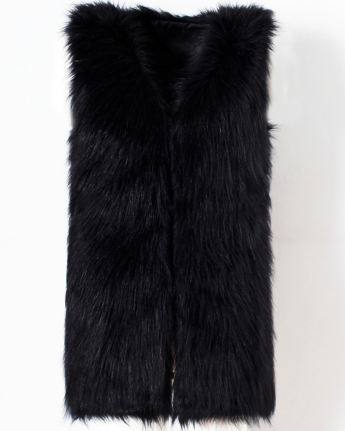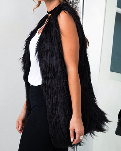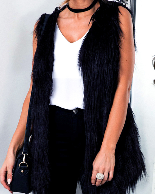 Faux Fur V Neck single breasted Regular Vests&Waistcoats