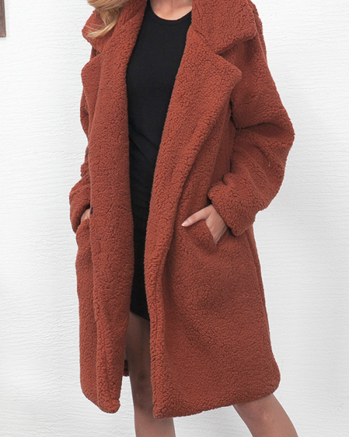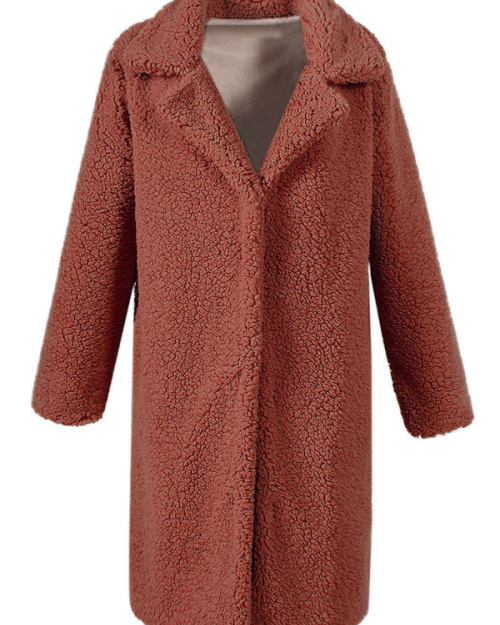 Trendy Turndown Collar Long Sleeves Light Tan Faux Fur Long Wool Coat