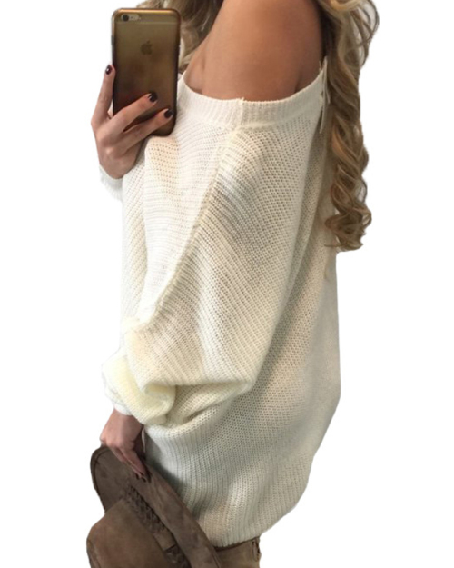 Polyester Casual Bateau Neck One Shoulder Long Sleeve Mini Dresses