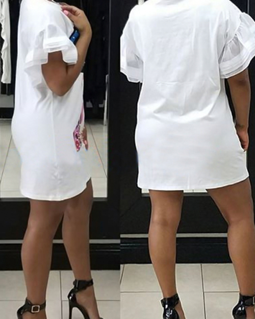 Polyester Casual O neck Cap Sleeve Short Sleeve Straight Mini Dresses