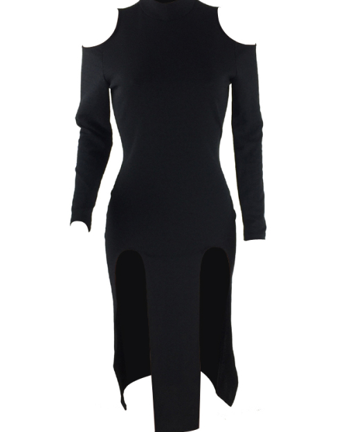 Polyester Sexy Mandarin Collar Cap Sleeve Long Sleeve Waist skirt Mid Calf Dresses