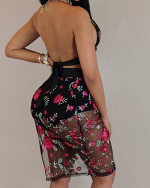 Sexy Backless Black Gauze Two-piece Skirt SetWithout Choker)