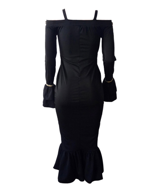 Sexy Bateau Neck Falbala Design Black Velvet Ankle Length Dress