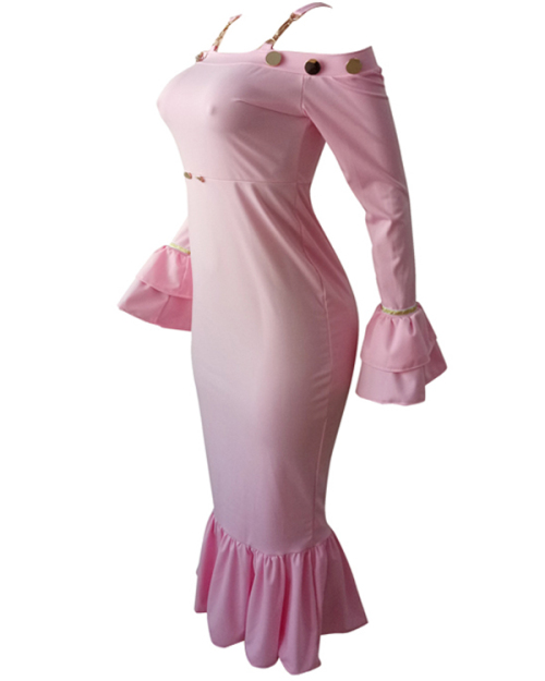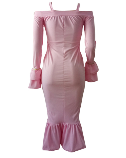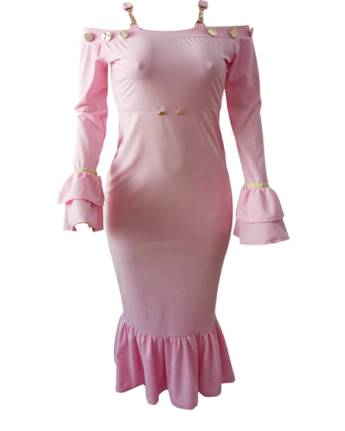 Sexy Bateau Neck Falbala Design Pink Velvet Ankle Length Dress