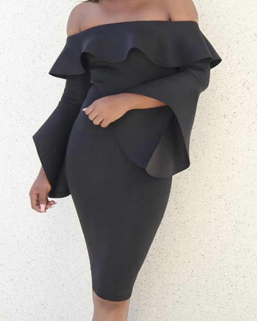 Sexy Bateau Neck Mandarin Sleeves Black Polyester Knee Length Dress
