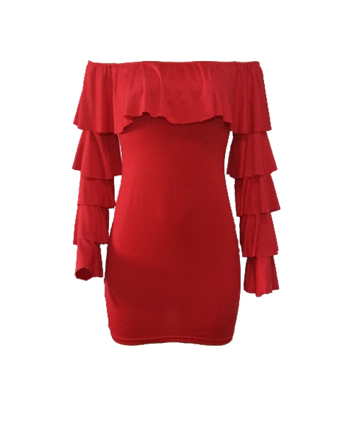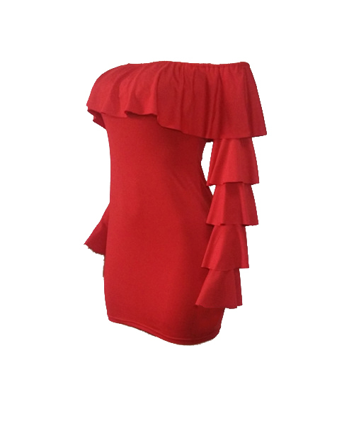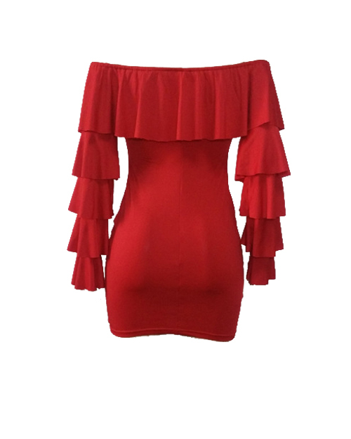 Sexy Bateau Neck Pleated Lace Red Milk Fiber Mini Dress