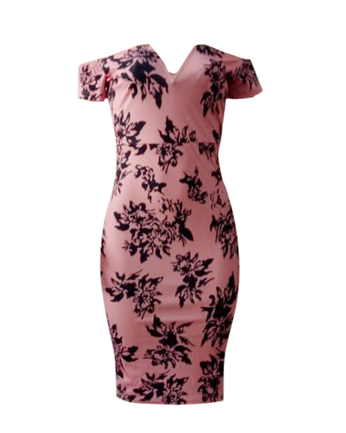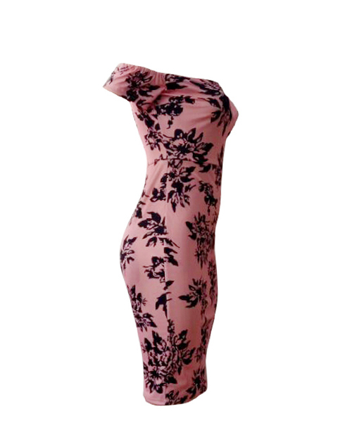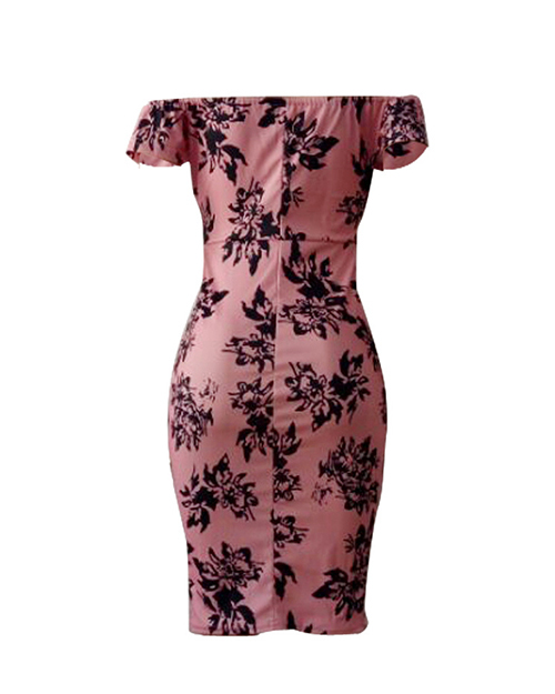Sexy Bateau Neck Printed Pink Polyester Sheath Knee Length Dress