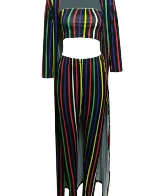 Sexy Bateau Neck Striped Patchwork Multi Qmilch Three-piece Pants Set