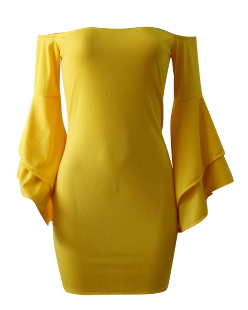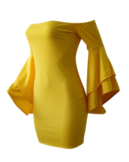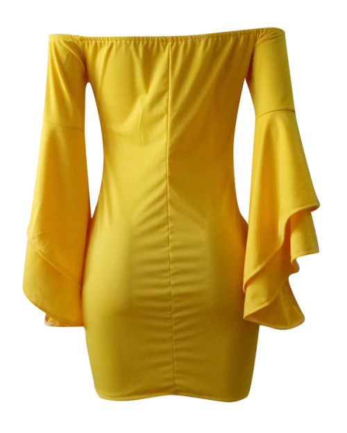 Sexy Bateau Neck Trumpet Sleeves Yellow Polyester Mini Dress