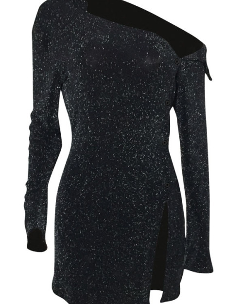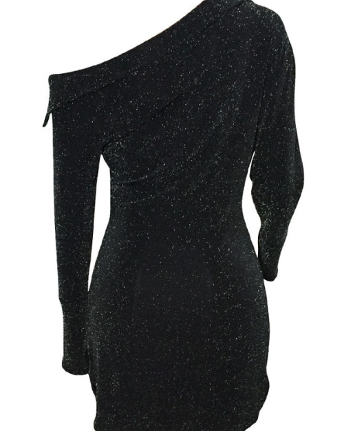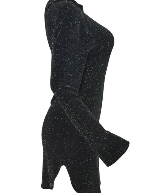 Sexy Boat Neck Sequins Decoration Black Polyester Sheath Mini Dress