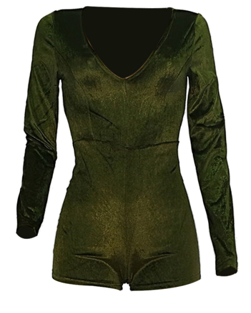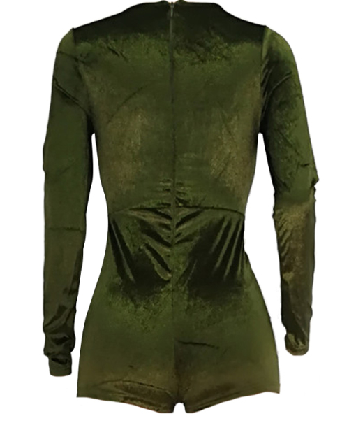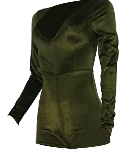Sexy Deep V Neck Army Green Velvet One-piece Jumpsuits