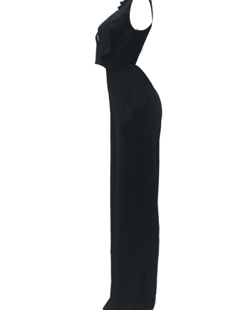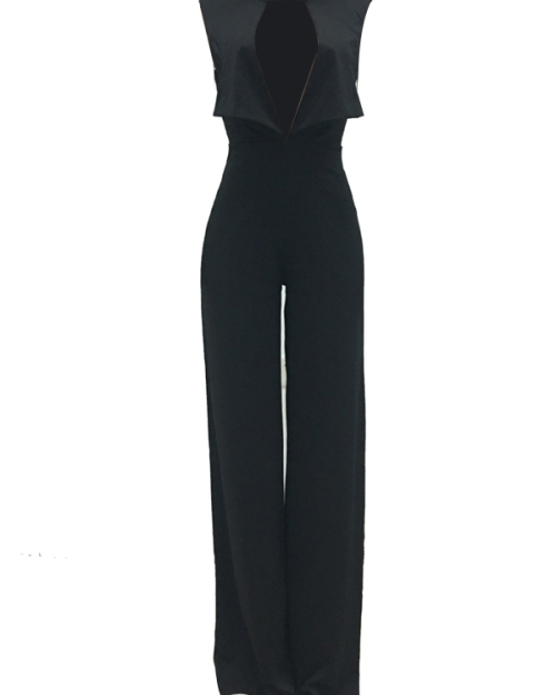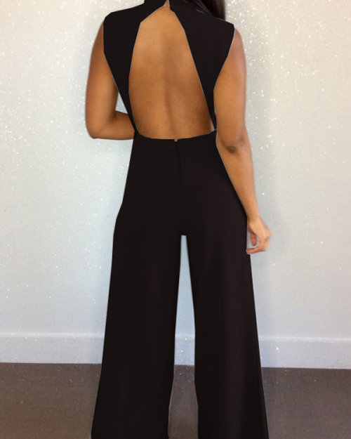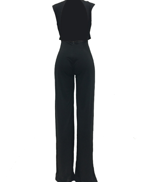 Sexy Deep V Neck Backless Black Polyester One-piece Jumpsuits
