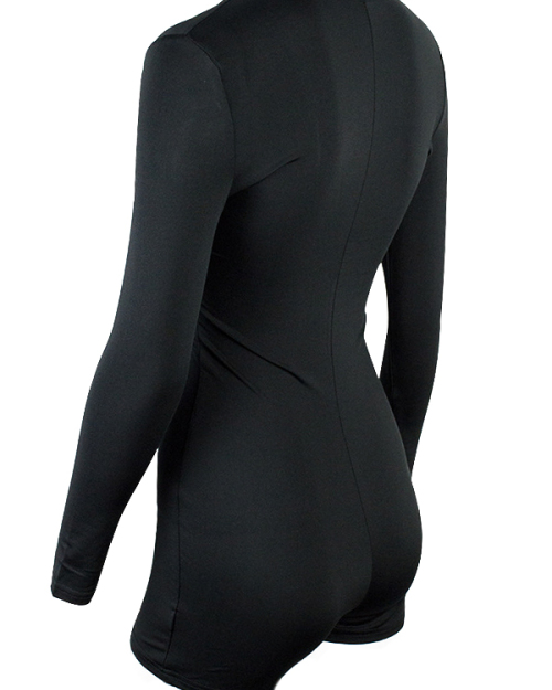 Sexy Deep V Neck Lace-up Hollow-out Black Polyester One-piece Jumpsuits