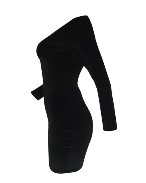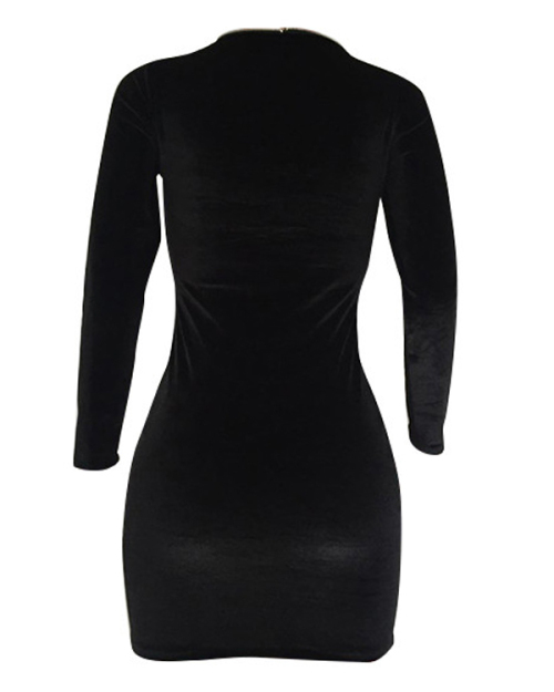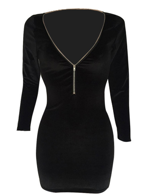 Sexy Deep V Neck Zipper Design Black Velvet Mini Dress