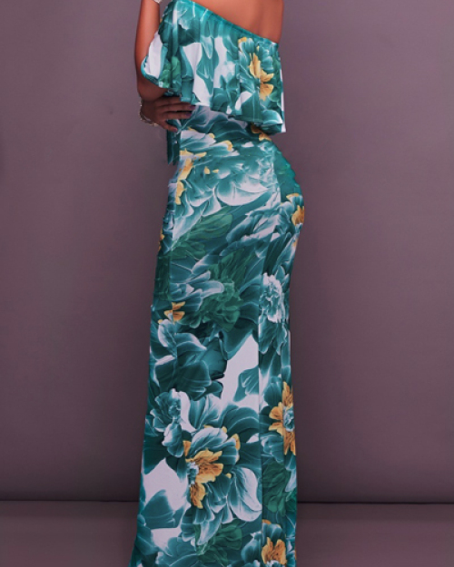 Sexy Dew Shoulder Printed Green Cotton Ankle Length Dress(Non Positioning Printing) Sexy Dew Shoulder Printed Green Cotton Ankle Length Dress(Non Positioning Printing)