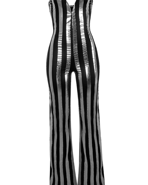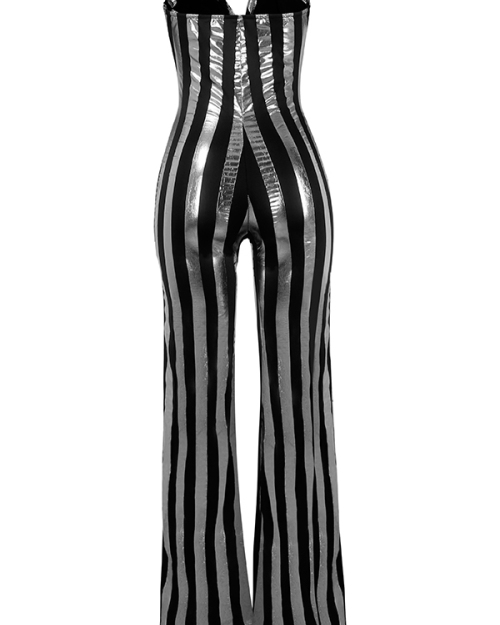 Sexy Dew Shoulder Striped Black-gold Polyester One-piece Jumpsuits