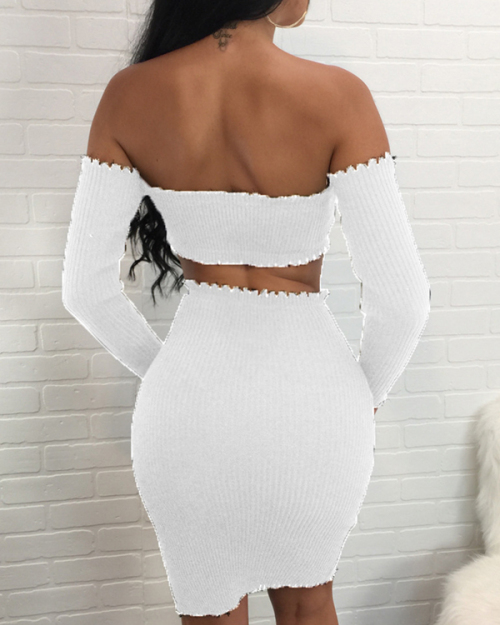 Sexy Dew Shoulder White Cotton Blend Two-piece Skirt Set