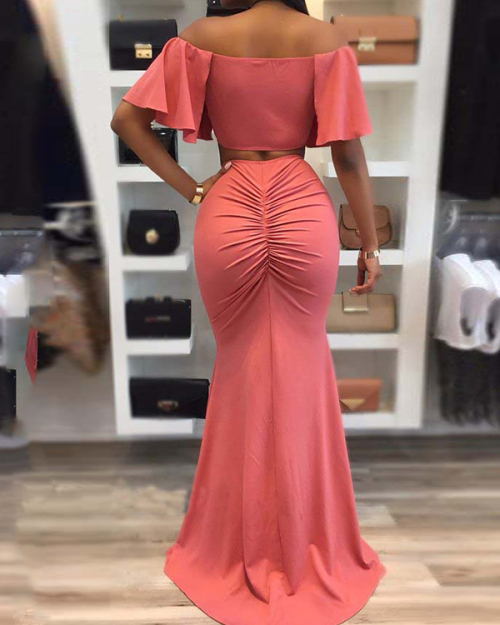 Sexy Drape Design Red Polyester Two Piece Skirt Set