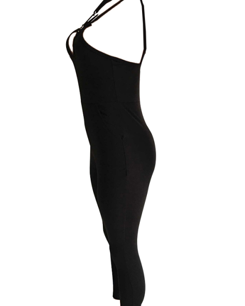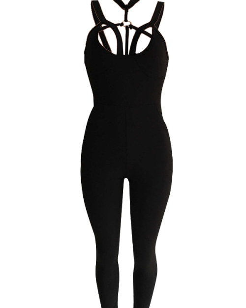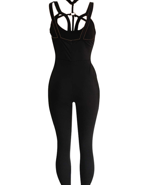 Sexy Halter Neck Hollow-out Black Polyester One-piece Jumpsuits