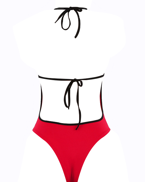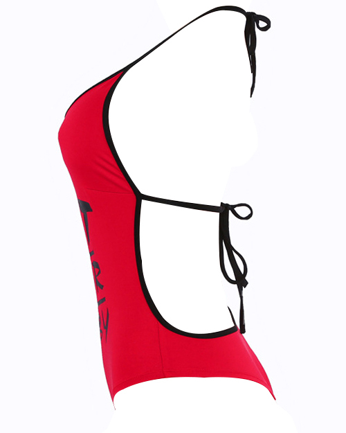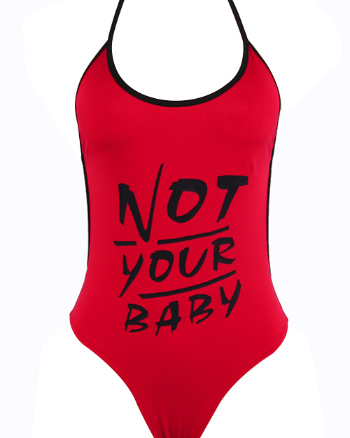 Sexy Halter Neck Letters Printed Backless Red Polyester One-piece Bodysuit