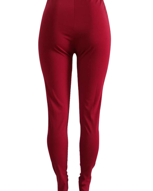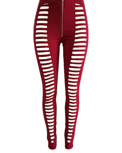 Sexy High Waist Hollow-out Wine Red Polyester Pants