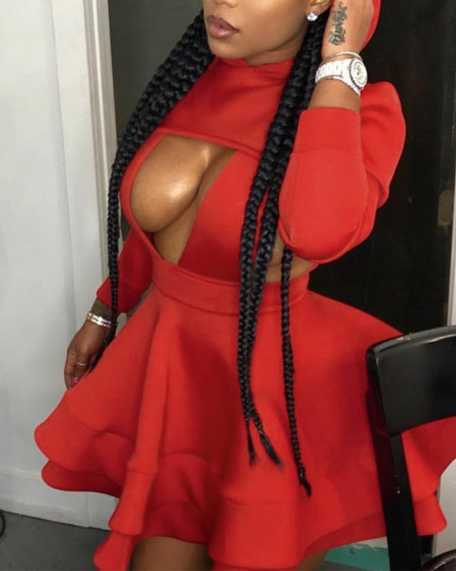 Sexy Hollow-out Pink Polyester Ball Gown Mini Dress