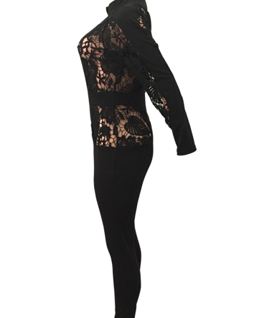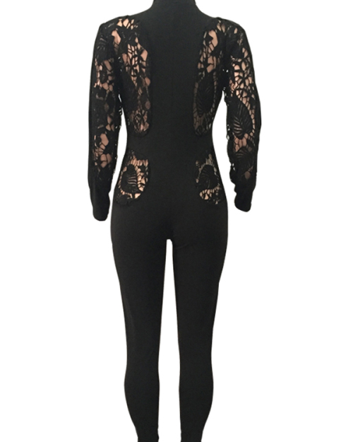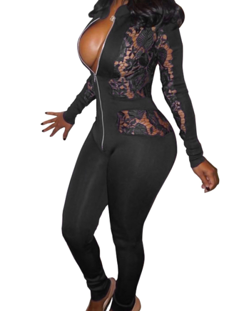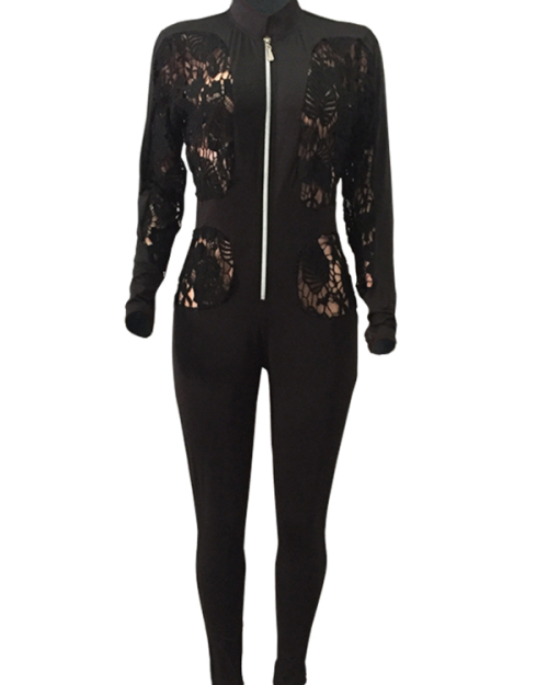 Sexy Hollow-out Zipper Design Black Polyester One-piece Jumpsuits