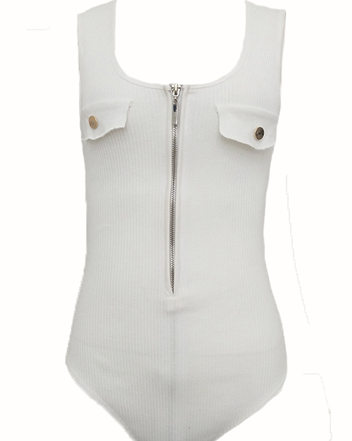 Sexy Hollow-out Zipper Design White Cotton One-piece Skinny Jumpsuits