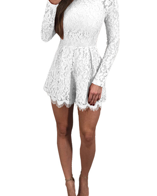 Sexy Mandarin Collar Lace-up Hollow-out White Bud Silk One-piece Jumpsuits