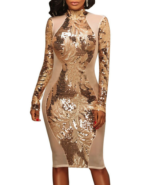 Sexy Patchwork Sequined Decorative Polyester Sheath Knee Length Dress