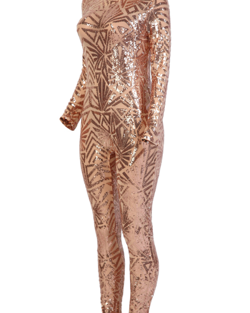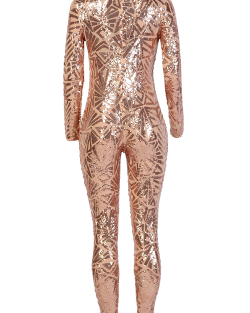 Sexy Printed See-Through Rose Gold Polyester One-piece Jumpsuits(Without Lining)